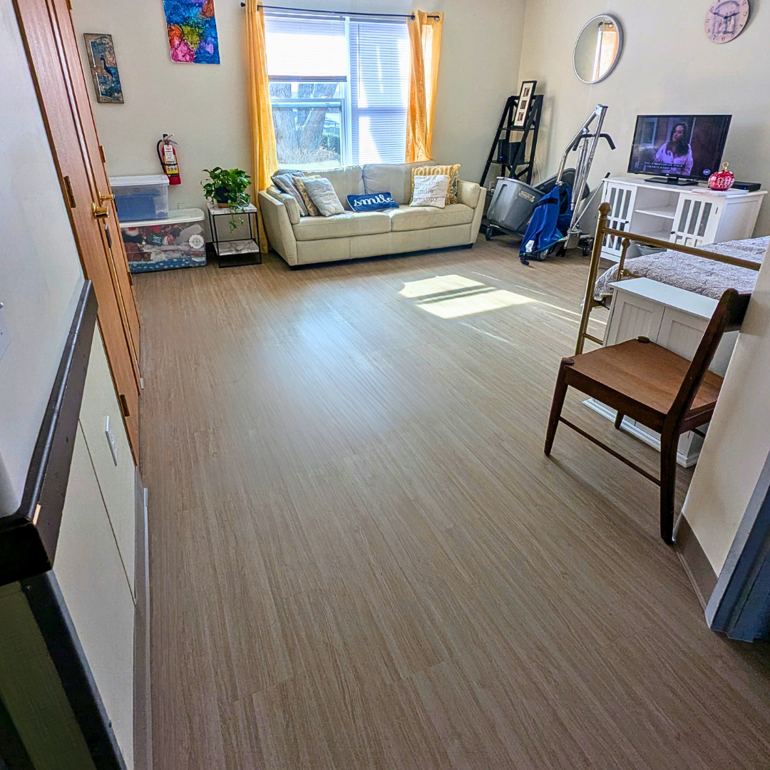 The sturdy new floors ensure residents who utilize wheelchairs and other mobility aids have a smooth surface to move around with ease.